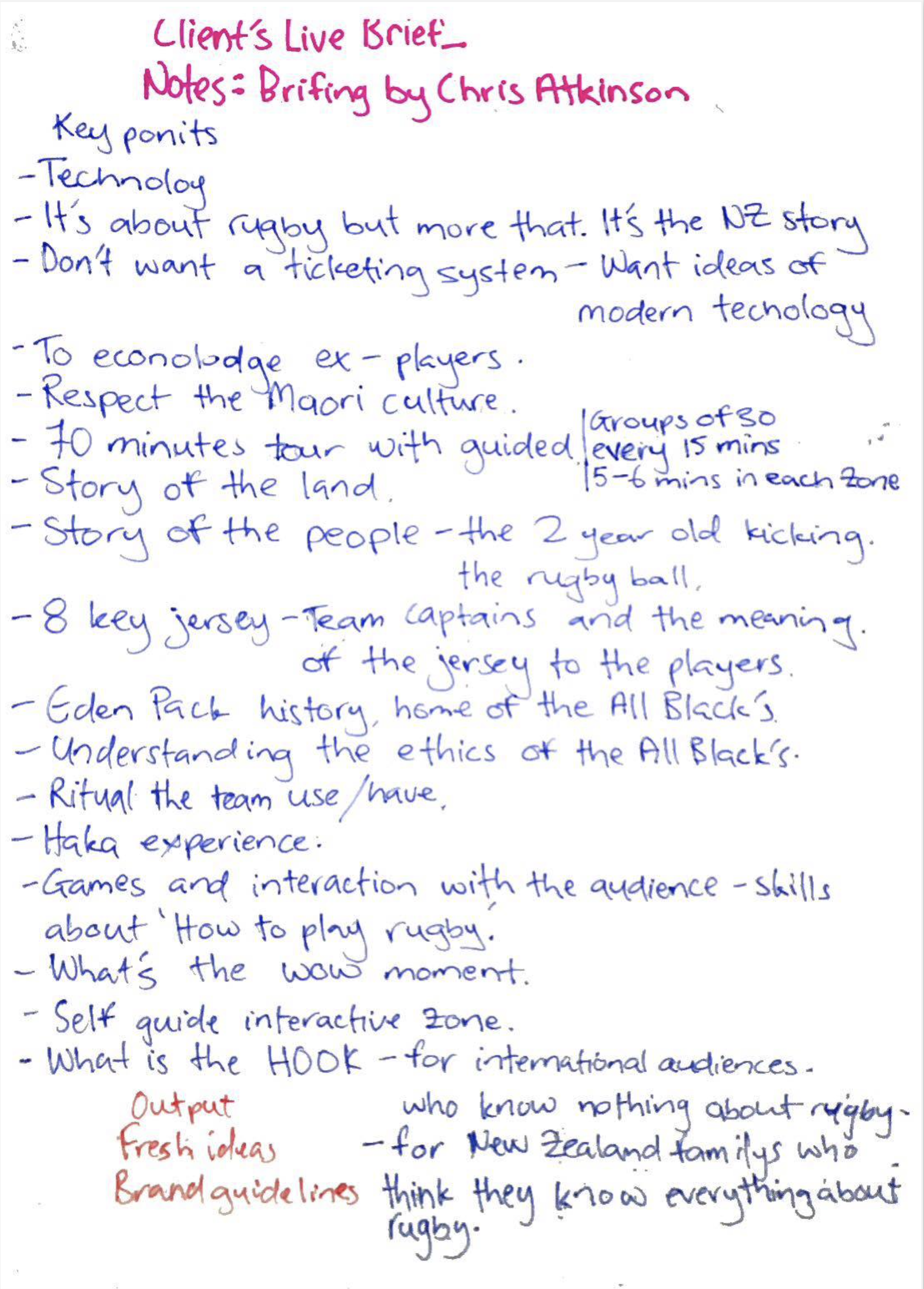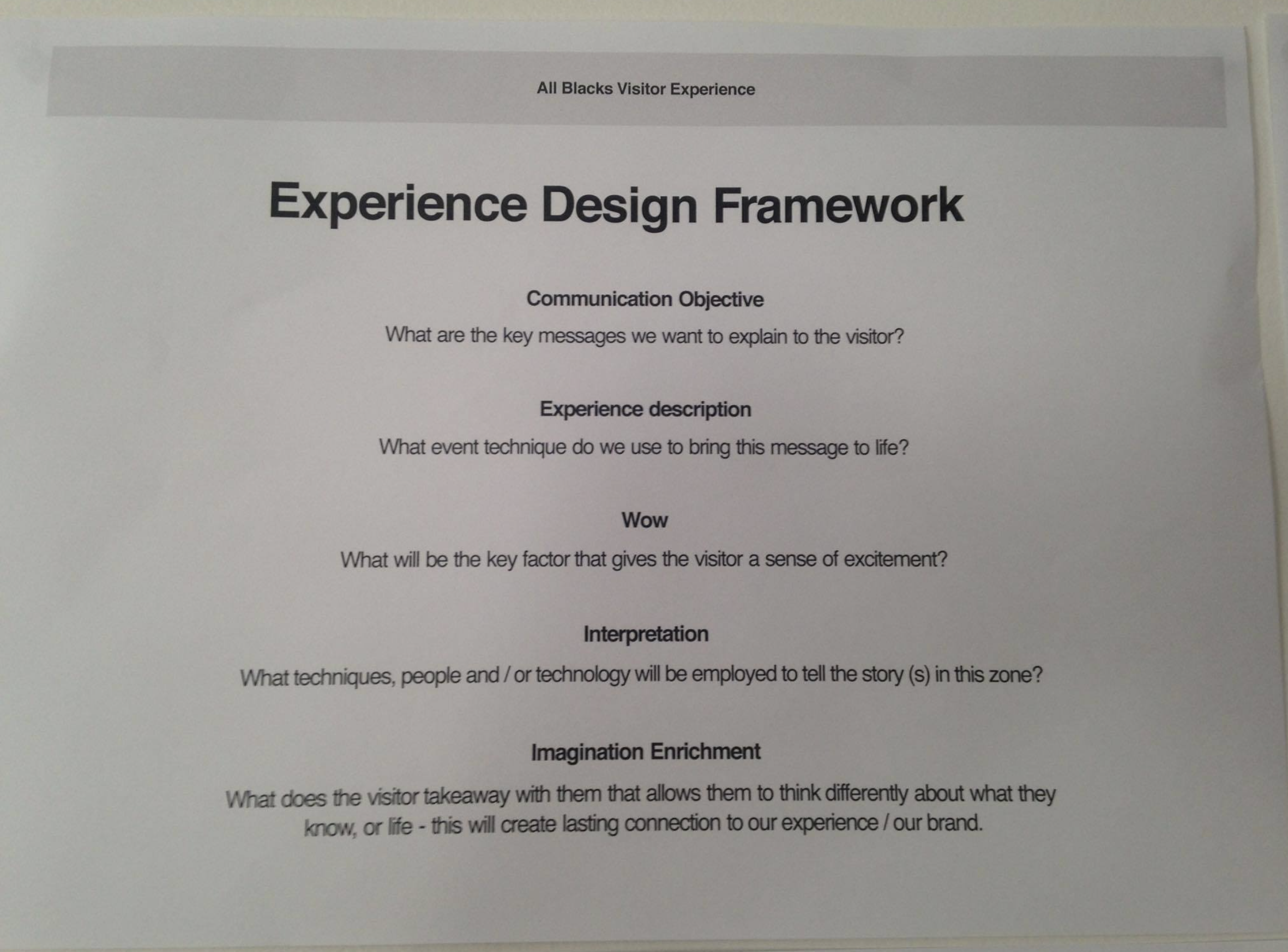 I conducted extensive research including stakeholder interviews, competitive analysis of similar sports experiences worldwide, and on-site observations of visitor behavior at other exhibitions. I organized focus groups with rugby fans of varying knowledge levels and international tourists to understand their expectations.
